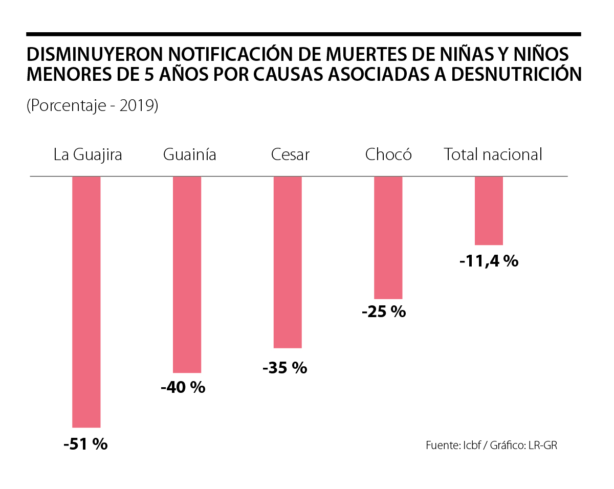 Desde que inició la administración Duque, erradicar las muertes por desnutrición de los niños menores de cinco años ha sido una prioridad. Para ello se diseñó el Plan Ni1+, en conjunto con el Ministerio de Salud. Estos esfuerzos resultaron en una disminución del 15% en la notificación de casos de mortalidad por y asociada a desnutrición a diciembre de 2019: 292 notificaciones versus 343 de 2018.