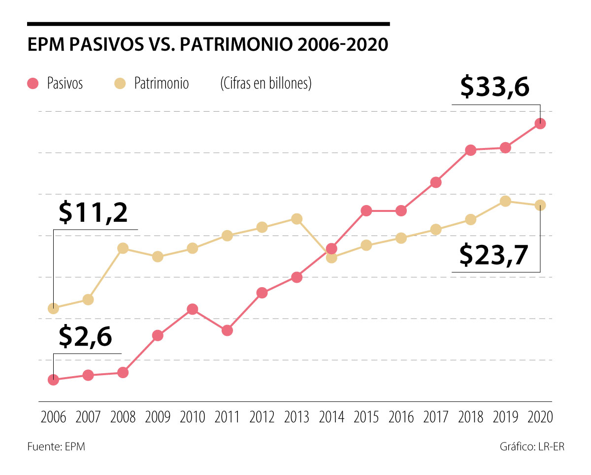 UNO. La Junta Saliente dice “el alto endeudamiento de EPM es sano”. Veamos; en el informe oficial de EPM de 2006 dice que el pasivo de EPM era $2,68 billones y el patrimonio $11,28 billones. En el informe de noviembre de 2020 dice que los pasivos son $37,98 billones y el patrimonio $24,9. Esto indica que los pasivos SÍ se multiplicaron 14 veces en los últimos 14 años y su patrimonio únicamente dos veces. Como fue la Junta Directiva la que autorizó tantas deudas, no es ella la llamada a decir si eso está bien o mal. Dejemos que hablen las calificadoras de riesgos más importantes del mundo. El Gerente de EPM certificó a la Superintendencia que la hoy firma Fitch Ratings calificó a EPM con AAA en 2007. Luego, en 2009, le bajaron la calificación de AAA a BBB+. En 2011 sigue bajando a BBB-. En 2014 sigue bajita en BBB. Y en 2020 baja más a BBB-. En 2020, desde New York se lee: “Fitch Ratings bajó la calificación internacional en moneda local y extranjera de EPM hasta BBB- y mantiene la Observación Negativa”. De 2007 a 2020 las calificadoras de riesgos bajaron la calificación de EPM de AAA a BBB-. Estas malas calificaciones han sido aceptadas con silencios y algo de culpabilidad en los últimos 13 años. El concepto de las calificadoras internacionales de riesgos es imbatible argumento.
