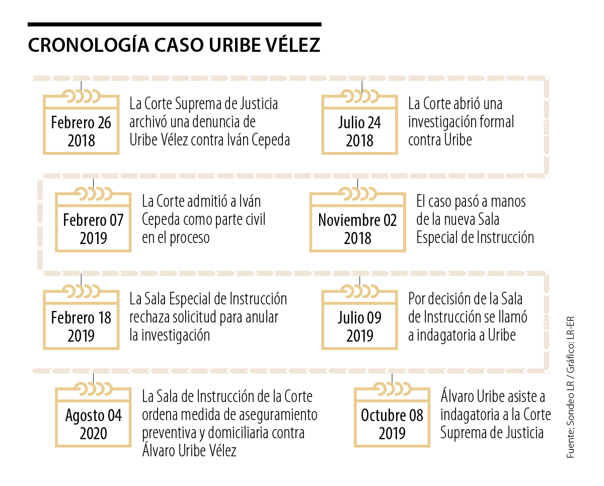 The document further states that Mr. Uribe filed complaints with the Supreme Court in 2012 and 2013 about that alleged witness tampering by Mr. Cepeda but the court refused to investigate. Instead, according to the document, in February 2018 the court made Mr. Uribe the subject of an investigation-without informing him. A week after that investigation began, Mr. Cepeda’s lawyer filed a complaint with the court against the former president for manipulation of witnesses. Five months later Mr. Uribe was notified by the court that he was being investigated for witness tampering.
