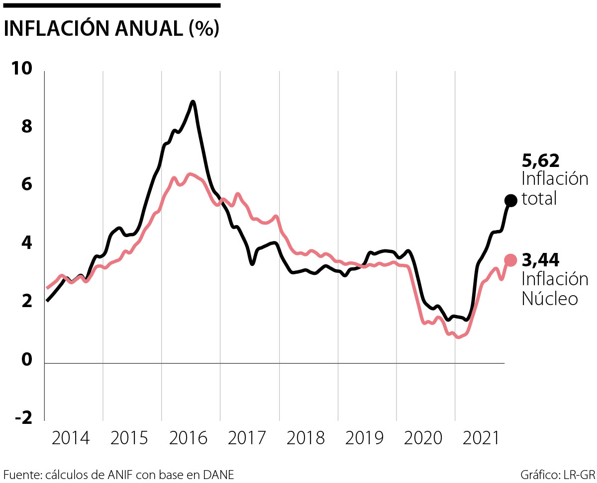 Las variaciones de la inflación para Colombia al cierre de 2021 presentaron magnitudes que no se veían desde 2016. El fenómeno es una expresión más de las consecuencias económicas y sociales que ha dejado la pandemia en el país. Entrando en materia, el pasado 5 de enero el Departamento Administrativo Nacional de Estadística (Dane) publicó la variación en la inflación anual, con un resultado de 5,62%, superior en poco más de cuatro puntos porcentuales a la de 2020 que había cerrado en 1,61%. Por su parte, para el mes de diciembre la variación fue de 0,73% que, descontando el resultado del mes de mayo por la presión inflacionaria resultado del paro nacional, fue el resultado más alto a nivel mensual en 2021.