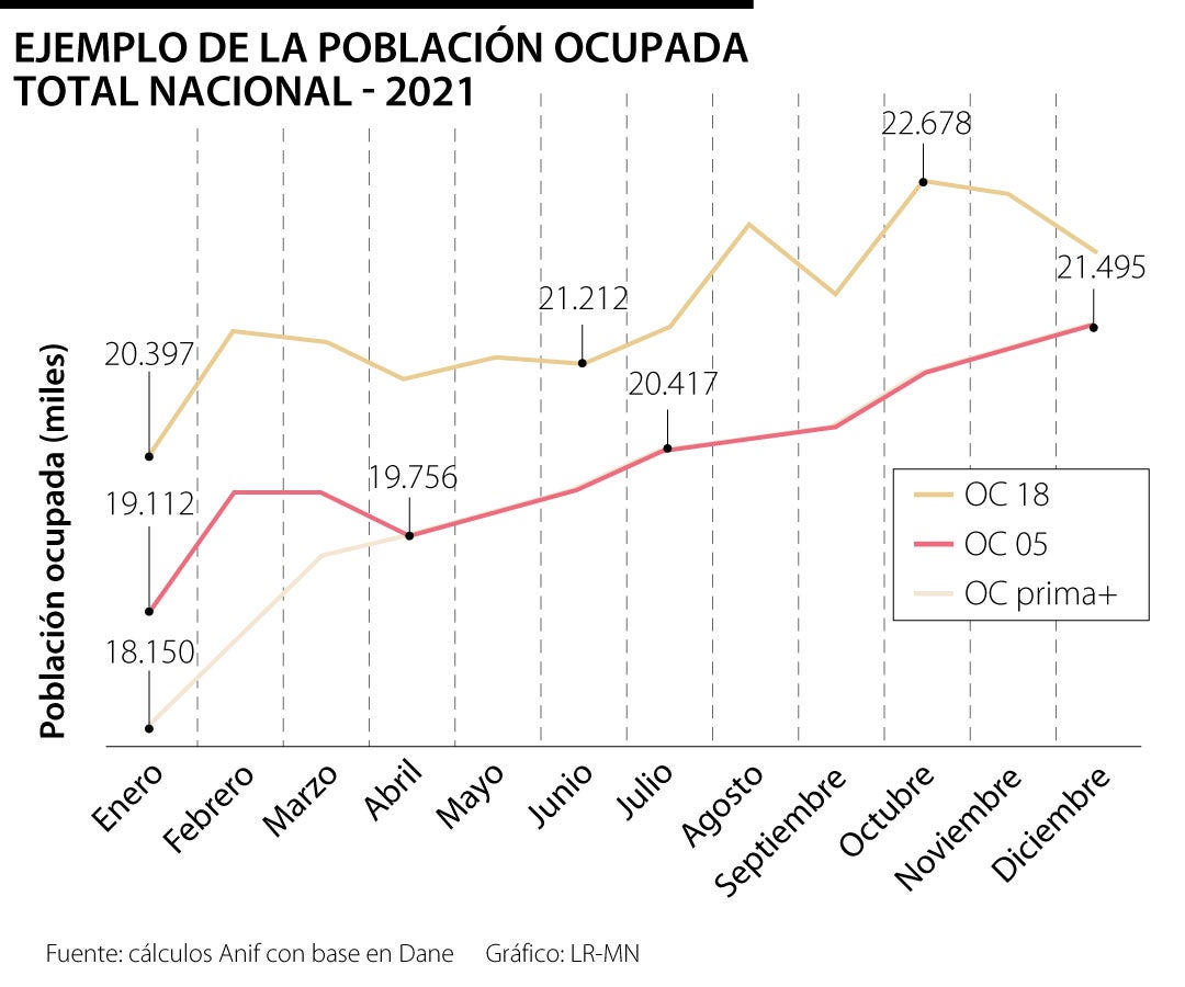 Para el reporte de las cifras del primer mes de 2022, el Departamento Administrativo Nacional de Estadística (Dane) realizó un cambio metodológico en la Gran Encuesta Integrada de Hogares (Geih) que pasó de utilizar el marco muestral del censo poblacional de 2005 a utilizar las cifras del último censo de 2018. Ese cambio metodológico requirió de algunos operativos de recuperación de información, así como de ajustes en las cifras de enero, febrero y marzo del 2021. La alta rigurosidad de la oficina estadística y la implementación paralela de los operativos bajo la Geih marco 2005 y la Geih marco 2018 permitieron la construcción de una base consistente y con una buena interpretabilidad de las cifras del mercado laboral.