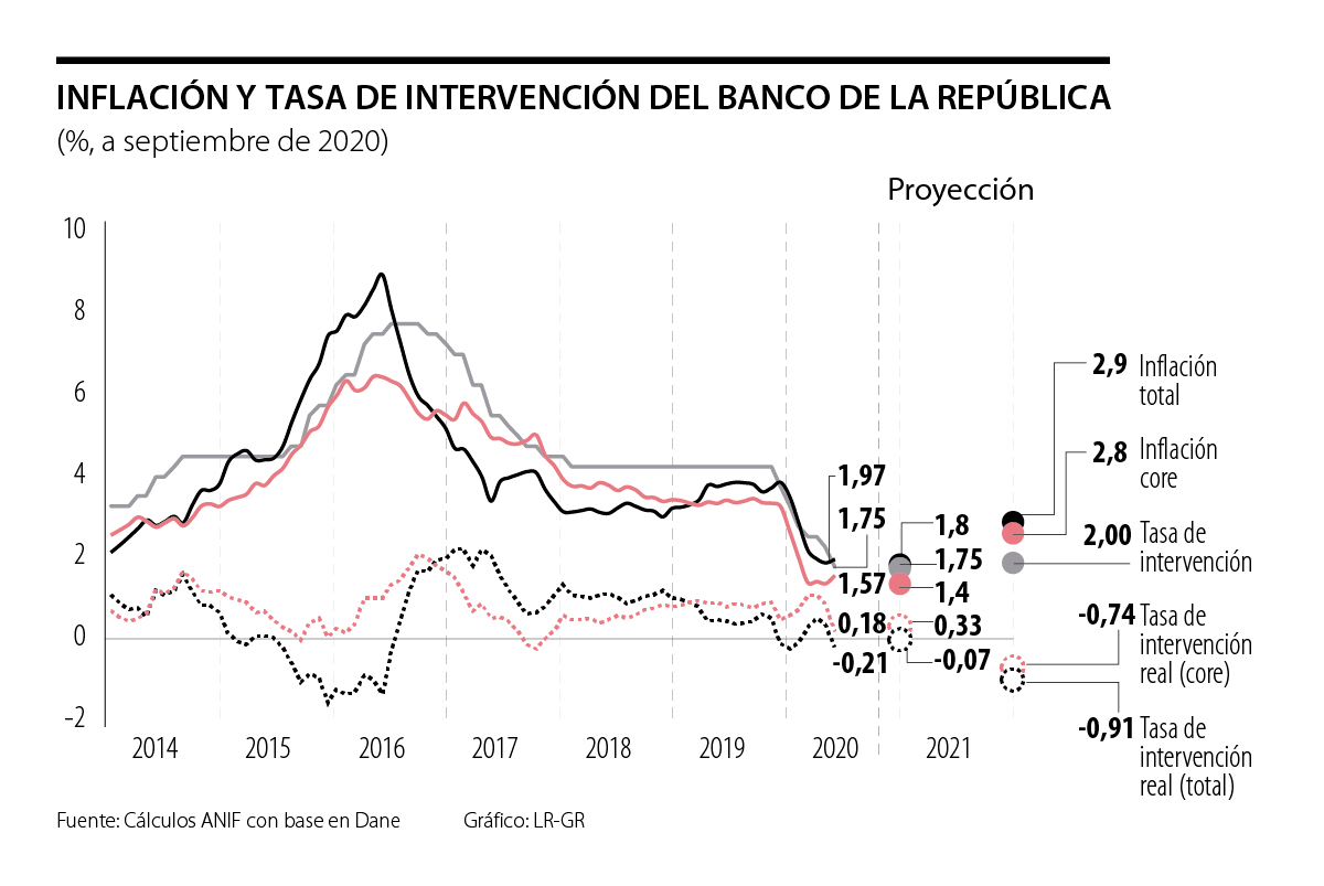 De esa manera, el BR habría completado su impulso monetario contra-cíclico, el cual se com- plementa acertadamente con medidas de suministro de liquidez y apoyo a la provisión de crédito para ho- gares y firmas. Nótese que lo anterior implica que la tasa de intervención real se ubicaría en valores entre -0.1% y 0.3% al finalizar 2020 (dependiendo de los valores inflacionarios que se usen como referencia).