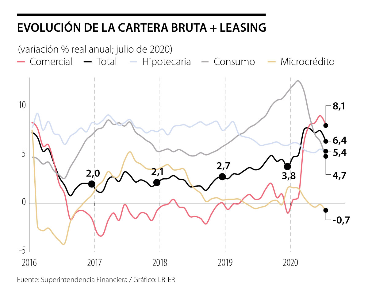 Por modalidad, se evidencian efectos encontrados de aceleraciones en la cartera comercial (8,1% vs. 0,6%), contrarrestando la desaceleración en consumo (4,7% vs. excesos del 8-10% un año atrás). En este último caso, esas expansiones lucirían elevadas aún en ausencia de pandemia, dado el elevado apalancamiento de los hogares (bordeando un 38% del ingreso disponible). Lucen desenfocados los recientes llamados a subsidios a dicha cartera de consumo.