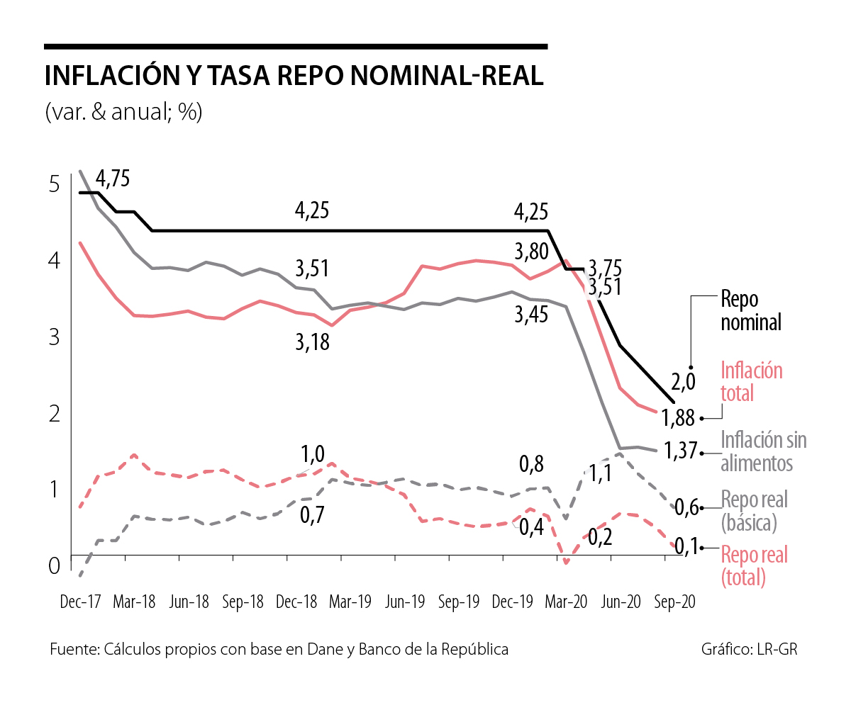 En el margen, todo lo anterior puede darle espacio al Banco de la República (BR) para una reducción adicional de 25pbs en su tasa repo antes de cerrar 2020, llevándola a niveles de 1,75% (buscando tasas de interés reales cercanas a 0, deflactadas con inflación subyacente). Ahora bien, aciertan el mercado y el mismo BR al señalar que estamos muy cerca de nivel terminal en ese estímulo monetario (es bien sabido que choque dual oferta-demanda reduce efecto estimulativo ordinario de tasas de interés).