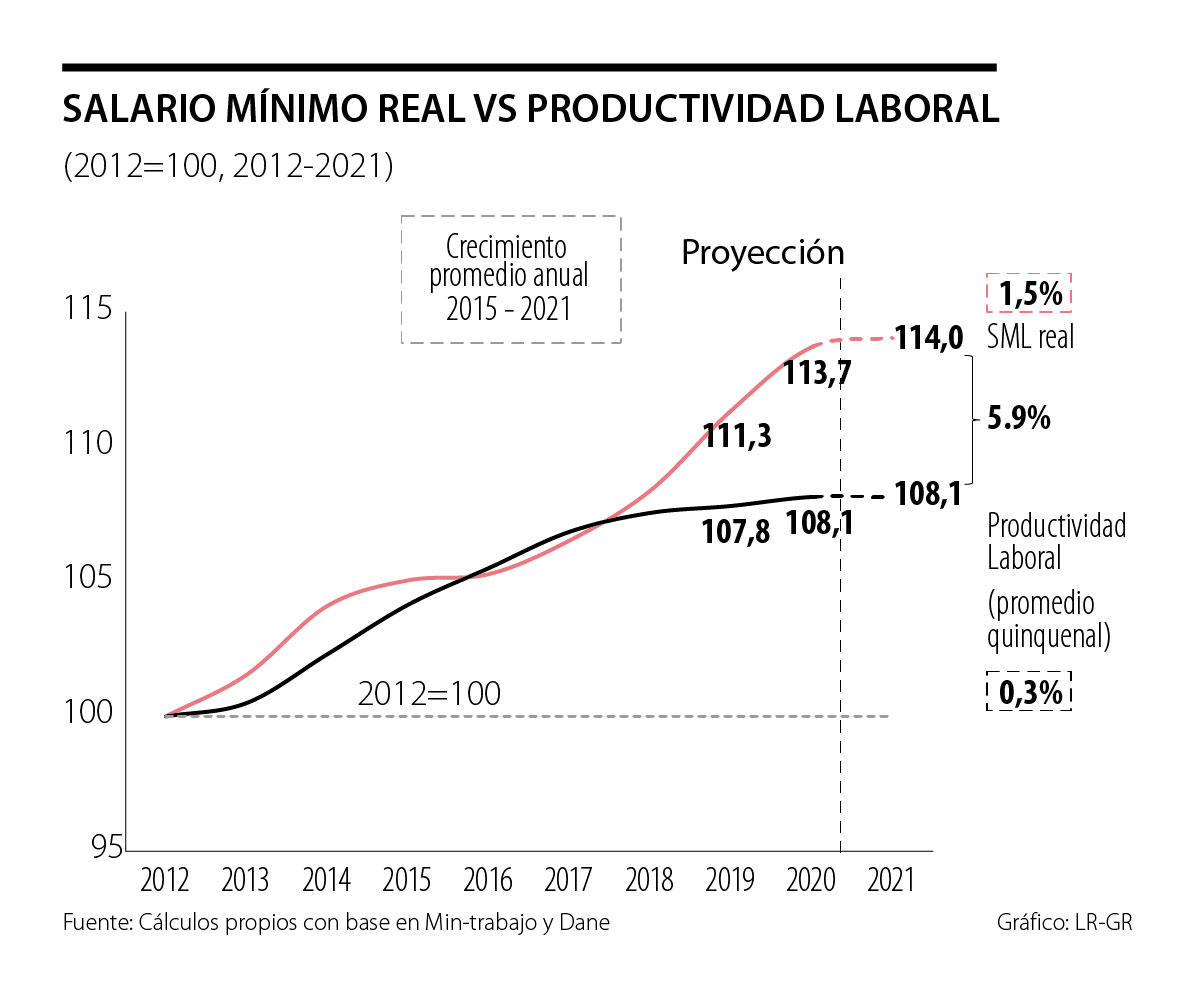 En temas laborales, son adecuadas las preocupaciones por elevadas lecturas de informalidad-desempleo estructural. El debate serio de estas preocupaciones debe tener el consecuente análisis de sus causas subyacentes de parafiscalidad-sobrecostos no salariales y brechas SML-salario medio y productividad laboral (ver gráfico). No son serias críticas al ministro Carrasquilla por recordarnos estos hechos.