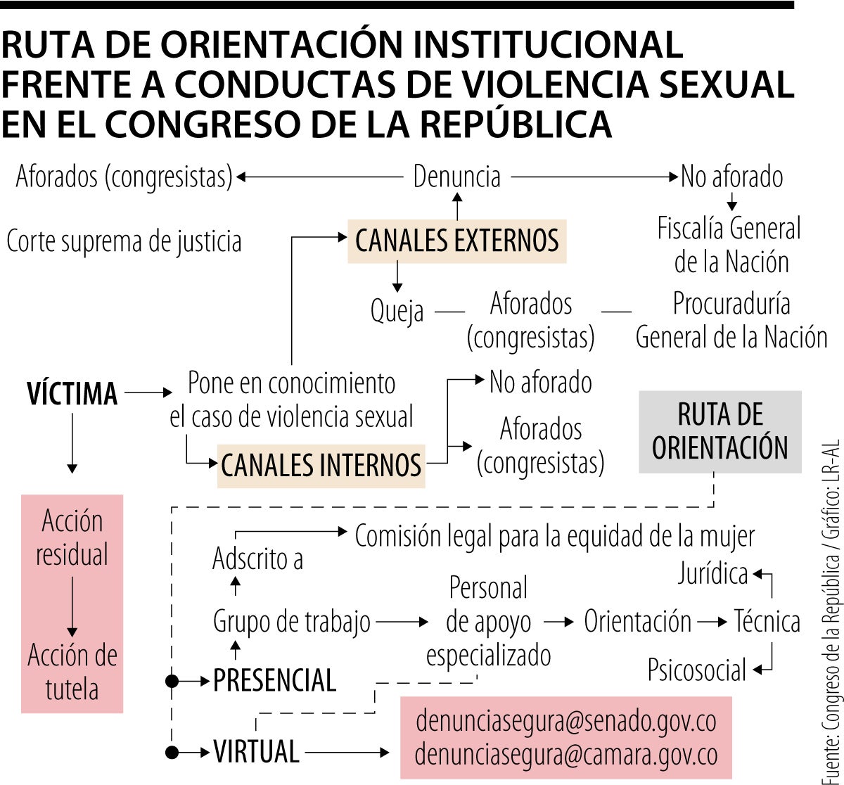 Así mismo, ya se encuentran en funcionamiento (desde el 23 de enero) los correos a los que las víctimas pueden enviar sus denuncias para recibir la orientación adecuada: denunciasegura@senado.gov.co y denunciasegura@camara.gov.co. Estos correos son manejados por grupo de trabajo especializado de expertas que se encargará de orientar y hacer el debido proceso de denuncia o queja, según sea el caso.