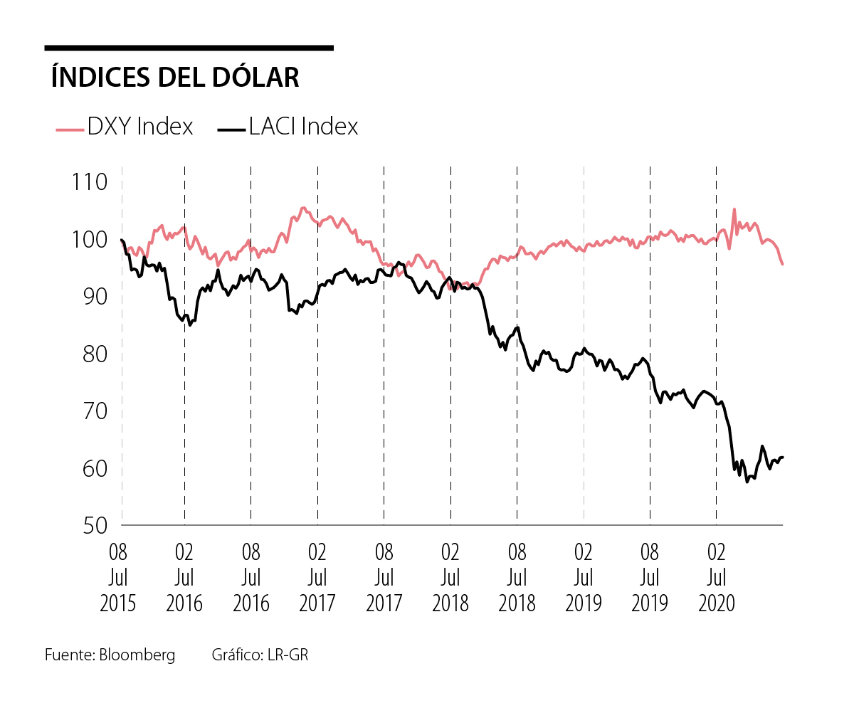 No obstante, la fortaleza vista en el euro no se ha replicado en la misma magnitud a otras monedas. En otras palabras, la debilidad del dólar ha sido mayormente causada por una fortaleza del euro y no por una debilidad generalizada del billete verde. De hecho, en lo corrido del año el DXY ha perdido apenas -2%, mientras que las monedas de mercados emergentes como las latinoamericanas medidas a través del índice JP Morgan Latin American Currency Index (LACI) han caído -16% frente al dólar en este mismo periodo.