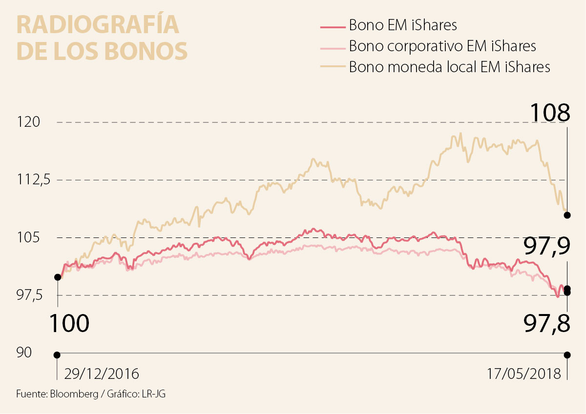 Los bonos soberanos denominados en dólares lo han hecho peor con una pérdida total de 6%. Los bonos soberanos denominados en moneda local tuvieron un comportamiento positivo hasta mitad de abril con un rendimiento total de 4% hasta entonces. En las últimas cuatro semanas, estos han corregido fuertemente y ahora bajan 4% en el año corrido.