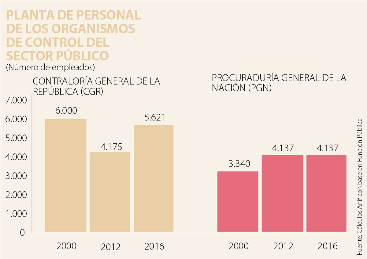 En el caso de la Procuraduría, Anif ha tenido de tiempo atrás la opinión que este organismo (independientemente de su actual buena gobernanza) debe clausurarse o al menos reducir su tamaño, delegando parte de sus funciones en el fortalecimiento del DNP y del escrutinio de los “tribunales de cuentas” (antes comentados) y del accionar de la Fiscalía. Esto permitiría rebajar la nómina Estatal en cerca de otros 4.000 funcionarios públicos, al reducir una entidad cuya razón de ser es “única en el mundo”.