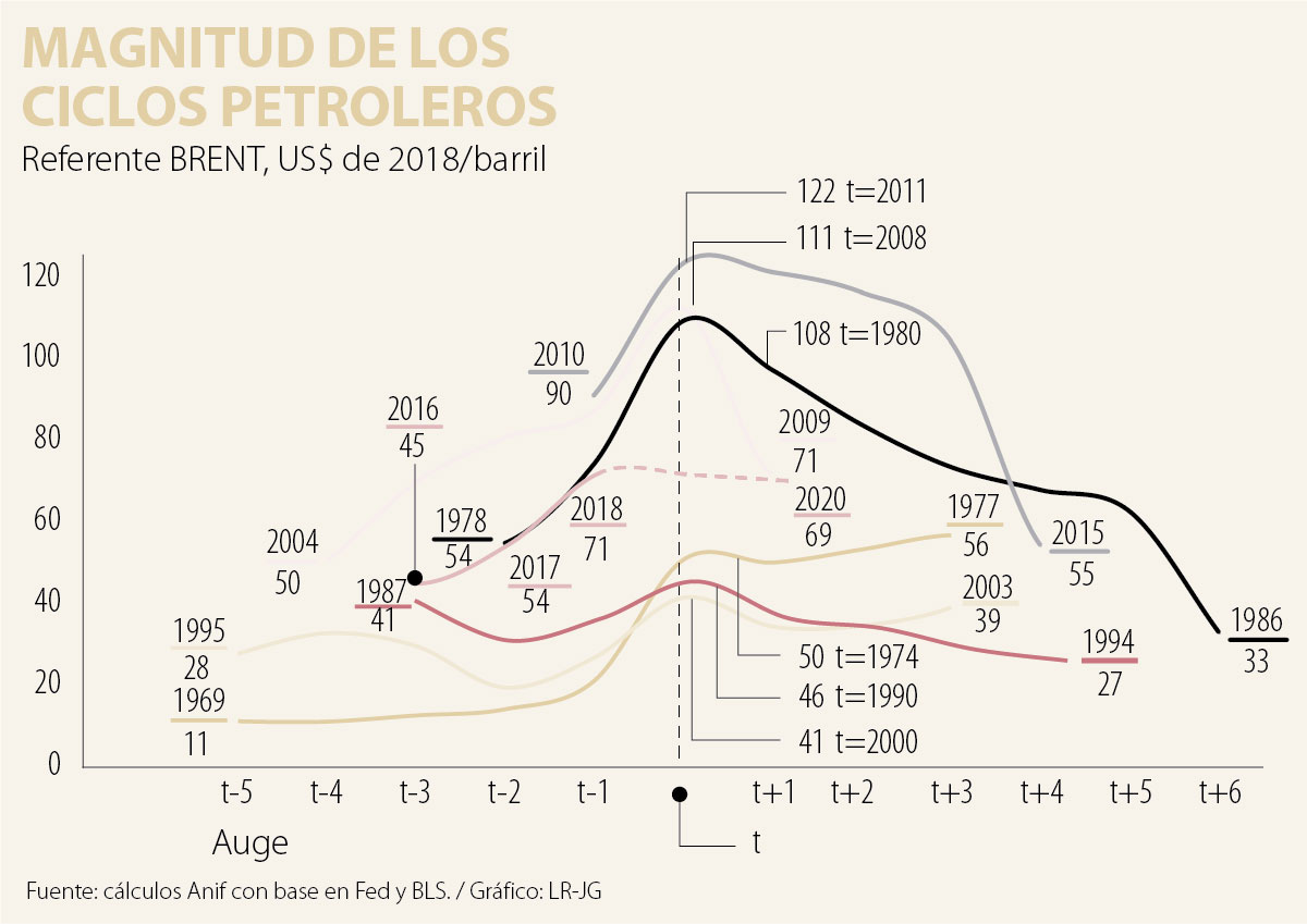 Ahora, cabe preguntarse ¿cuál será la trayectoria del nuevo ciclo petrolero iniciado aparentemente en 2016? Para responderlo, es necesario monitorear diversos factores: i) la dinámica de la demanda global de crudo, donde jugará lo que ocurra en materia comercial entre Estados Unidos y China; ii) las tensiones geopolíticas afectando a Arabia Saudita, Libia, Irán y Venezuela, siendo el principal foco de volatilidad en la oferta; iii) el cumplimiento de los acuerdos de la Opep+; y iv) la dinámica de la producción petrolera de Estados Unidos, convirtiéndose en el nuevo “swing producer”, dada la alta elasticidad precio del fracking.