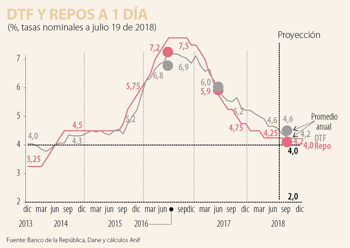Durante la actual fase de política monetaria anticíclica, el BR ha recortado su repo-central del 7,75% al 4,25% durante diciembre de 2016-junio de 2018. Ello ha provocado caídas en todas las referencias del IBR, lo cual corrobora la mayor eficacia y prontitud con que este transmite la postura monetaria del BR.