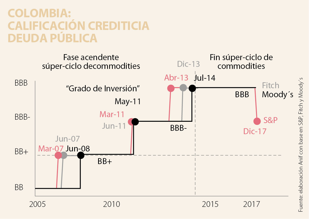 El año 2017 cerró con la mala noticia de la rebaja de un escalón en la calificación-crediticia de Colombia a manos de S&P, dejándonos en la categoría simple de “Grado de Inversión”.