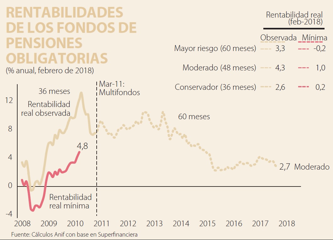 Existe un marco regulatorio de “multifondos” (Ley 1328 de 2009) a través del cual se protegen los ahorros en función del tiempo faltante para pensionarse, de tal manera que las personas prontas a jubilarse tienen que concentrar sus ahorros en renta fija y solo los más jóvenes tendrán oportunidad de explotar a su favor el conocido factor beta ( = Retorno / Riesgo), pero si a estos últimos no se les da la información adecuada ellos motu-proprio estarán incurriendo en la problemática del MLA.
