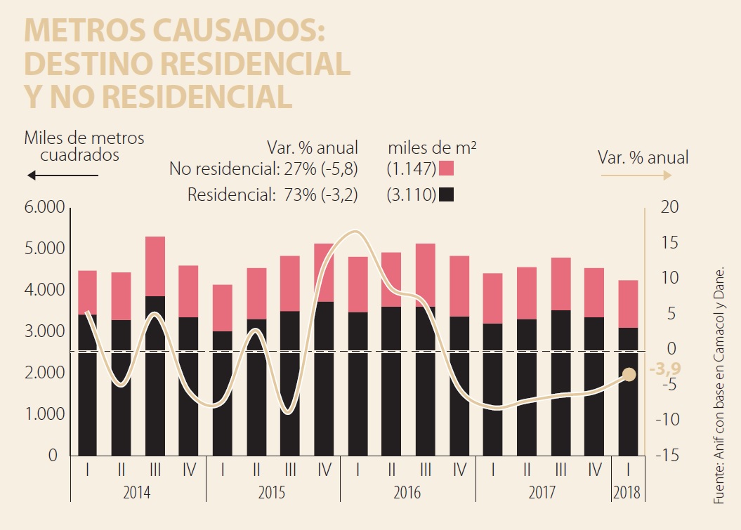 Ello como consecuencia del mal desempeño del área residencial (que representa 73% del área causada total), la cual se contrajo a -3,2% anual durante el primer trimestre de 2018 (vs. -8,2%). Lo anterior se sumó a los efectos negativos generados por el área no residencial (27% del total), con caídas de -5,8% anual en el primer trimestre de 2018 (vs. -8,7%).