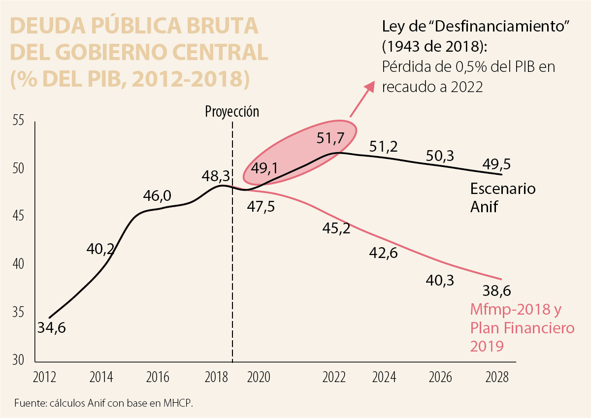 El Ministerio de Hacienda y Crédito Público (Mhcp) acaba de revelar datos preliminares sobre el cierre fiscal de 2018 y sus perspectivas para 2019. En lo referente al cierre de 2018, se ratificó lo esperado frente al cumplimiento del 3,1% del PIB referido al déficit del Gobierno Central (GC). Esto, a pesar de haberse tenido un mal registro en lo relación a Recaudo Tributario/PIB, bajando del 13,8% en 2017 hacia 13,6% en 2018 (neto de devoluciones Dian). Esta cifra de recaudo no se compagina con las celebraciones sobrecumplimientos en gestión tributaria, ni tampoco con la meta, que llevamos ya cinco años persiguiendo, de elevar dicho recaudo a no menos del 15% del PIB. Continuamos con una peligrosa brecha (cercana a 2% del PIB) cuando nos comparamos con el recaudo efectivo que se observa en países Ocde, o incluso frente a los emergentes que disfrutan de ubicarse dos escalones por encima del “grado de inversión”.