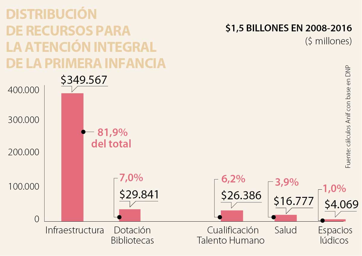 De allí la urgencia de profundizar en políticas públicas que contribuyan al desarrollo de los niños en edad temprana. Se estima que la asignación presupuestal en Colombia tan solo ha llegado a $1,5 billones (0,02% del PIB/año) durante 2008-2016. Como todo está por hacerse, pues el grueso de esos dineros se ha destinado más a inversión en infraestructura (52%) que a mejoras de salud (2,5%) o capacitación profesoral (4%).