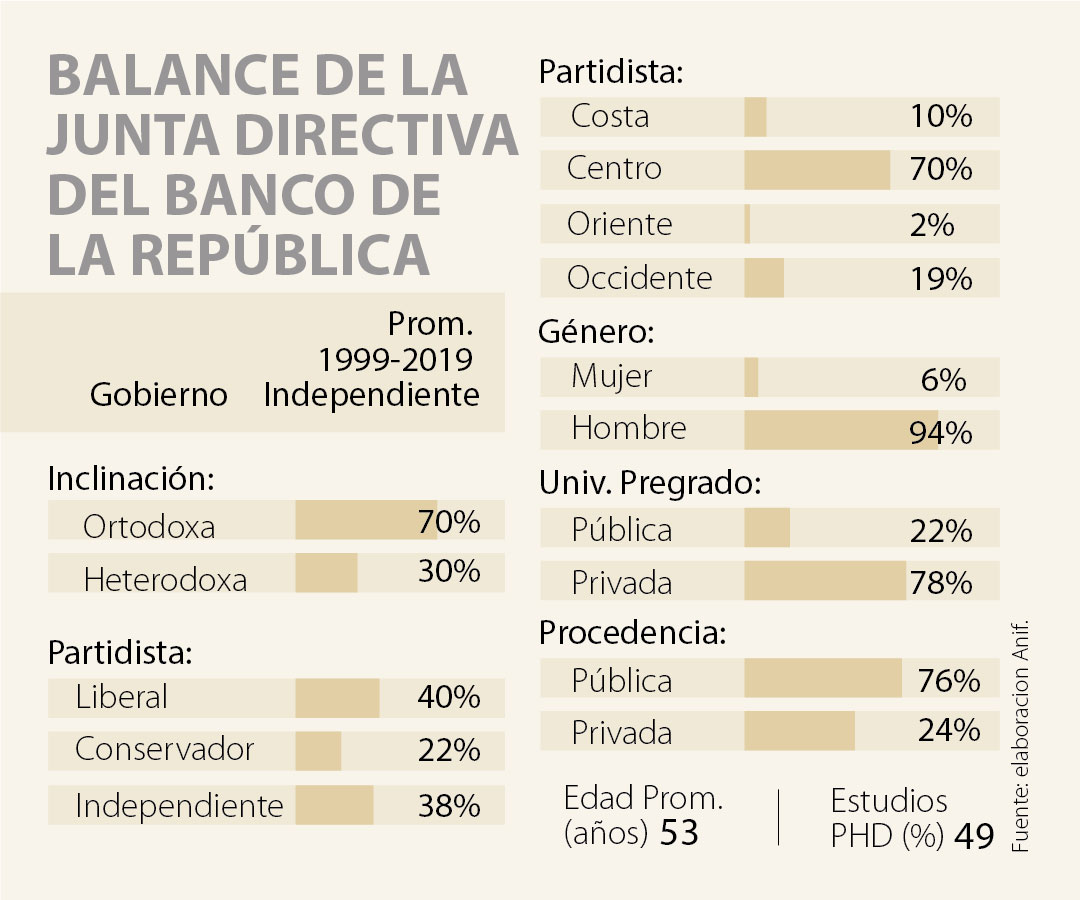 Recordemos también que, en 2017, dicha Jdrb había experimentado cambios significativos en su composición. De una parte, se había elegido como gerente a Echavarría en reemplazo del gerente Uribe, quien ha- bía cumplido su máximo de doce años en el cargo. En segundo lugar, en reemplazo de los salientes codirectores Cano y Vallejo, el presidente Santos había nombrado a Hernández (ex Superintendente Financiero) y a Ocampo, proveniente de la Universidad de Columbia.