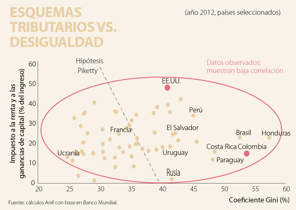 Recordemos que Piketty postuló la hipótesis de que, frente a dicha concentración del ingreso, no quedaba alternativa diferente a generar más igualdad a través de esquemas tributarios cuasi-expropiatorios, tales como tasas marginales de 75% sobre la renta de los ricos y también sobre sus herencias. Al observar las cifras, estos esquemas de tributación no parecen tener efectos significativos en la reducción de la brecha de desigualdad.