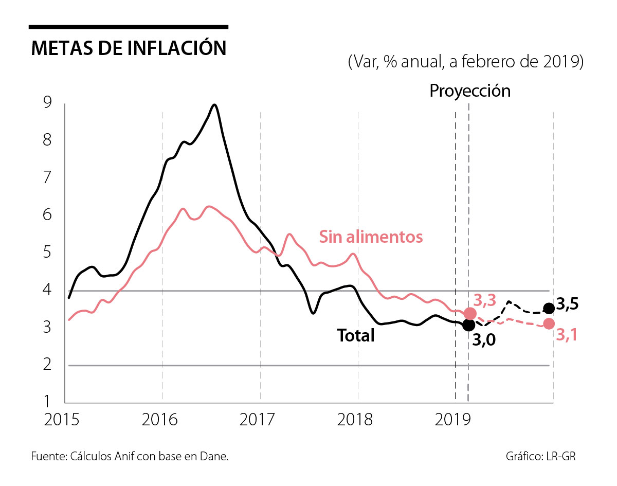 Anif ratifica su pronóstico de crecimiento de 3,3% para 2019 en Colombia, cerca de la cifra de consenso. Teniendo en cuenta todo lo anterior, Anif pronostica que la repo del BR permanecerá inalterada en su actual 4,25% durante el primer semestre de 2019. Durante la segunda mitad del año, se deberán sopesar las buenas noticias inflacionarias con la mencionada debilidad económica y el deterioro de las cuentas externas. Probablemente, el BR estará incrementando la repo en 50pb durante dicho período, llevándola a 4,75% al cierre de 2019.