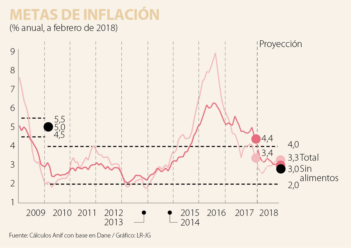 El Dane reportó que en febrero de 2018 registró una inflación de 0,71%, cifra inferior al consenso del mercado (0,75%) y a la registrada un año atrás (1,01%). Ello implicó convergencias en la lectura anual hacia un favorable 3,37% anual (vs. 3,68% del mes anterior), continuando hacia la meta de largo plazo de 3% establecida por el Banco de la República (BR).