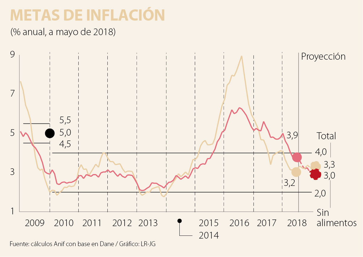 Todo lo anterior probablemente implicará que en los próximos meses veamos la inflación total en la franja 3,1%-3,3% anual, muy cerca de la meta de largo plazo del 3% que ahora persigue con ahínco el Banco de la República (BR), tras haber desbordado en los últimos tres años el techo del rango meta del 2%-4% anual.