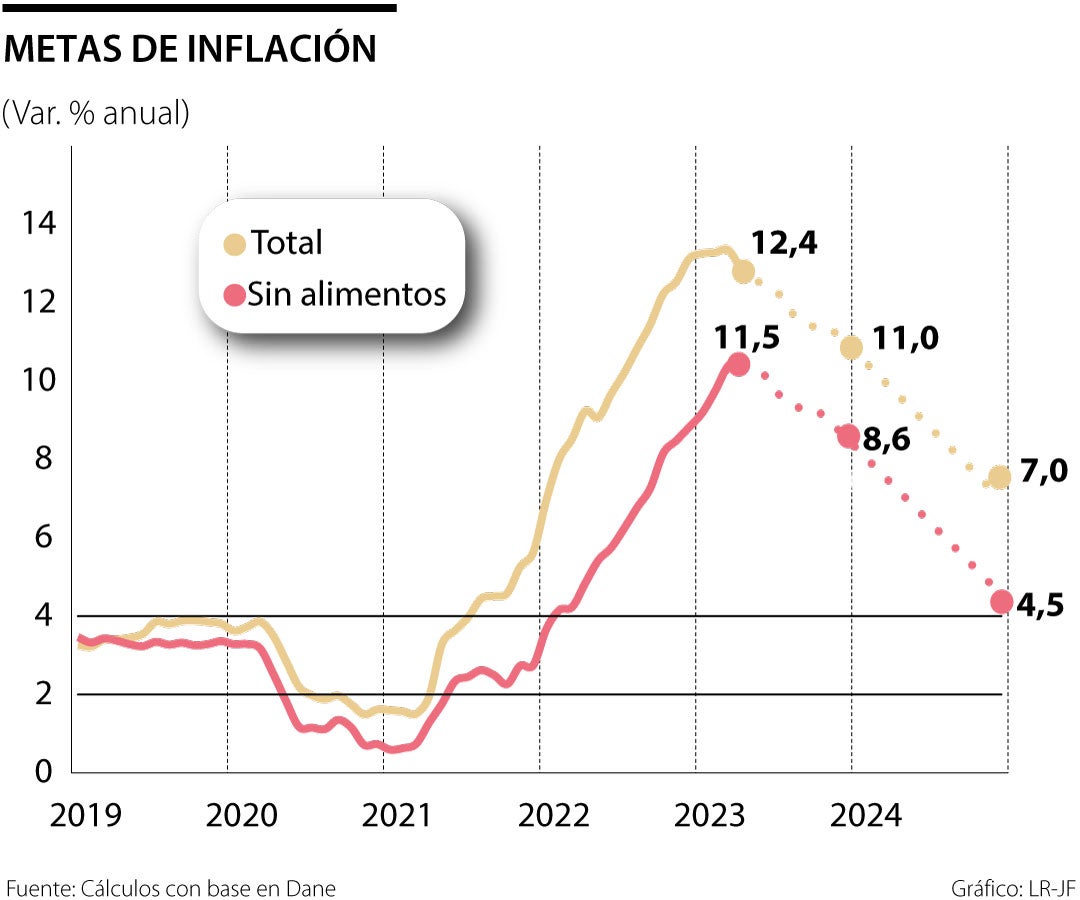 En el caso de nuestro Banco de la República (BR), los desafíos son aún mayores, pues la contención de la inflación es menos clara y la desaceleración PIB-real más pronunciada. Por ejemplo, la inflación al corte de mayo de 2023 continuo tan alta como 12.4% anual y la “subyacente” se mantuvo “pegada” en el elevado valor de 11,6% anual (ver gráfico adjunto).