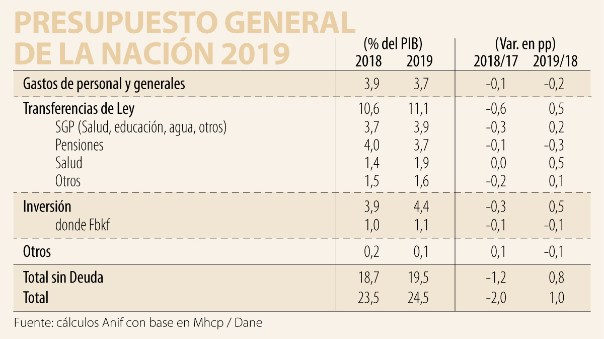 Decía entonces dicha Comisión que ese traslado de funciones tendría la bondad de mejorar la eficacia del manejo presupuestal (achicando burocracia) y de centralizar los criterios de asignación (mejorando la coherencia entre objetivos y resultados). La experiencia de Colombia en este frente presupuestal no ha sido nada afortunada, pues en realidad se manejan tres tipos de presupuestos: i) el del Mhcp, focalizado en los temas operativos y con creciente presión de las obligaciones pensionales, de salud y de la función pública (totalizando 14% del PIB, del cual 3% del PIB se destina al pago de intereses de la deuda pública); ii) el del componente de inversión del DNP, donde se habla de asignaciones cercanas a 4% del PIB, pero donde la porción propiamente relacionada con la Formación Bruta de Capital Fijo no ha superado 1,1% del PIB en años recientes (ver cuadro adjunto); y iii) el presupuesto (con programación bienal) relacionado con las regalías-territoriales, las cuales representan 0,6% del PIB tradicionalmente, e incluso llegan a cerca de 1% del PIB en años de auge (como en 2010-2014 y nuevamente en 2018-2020).