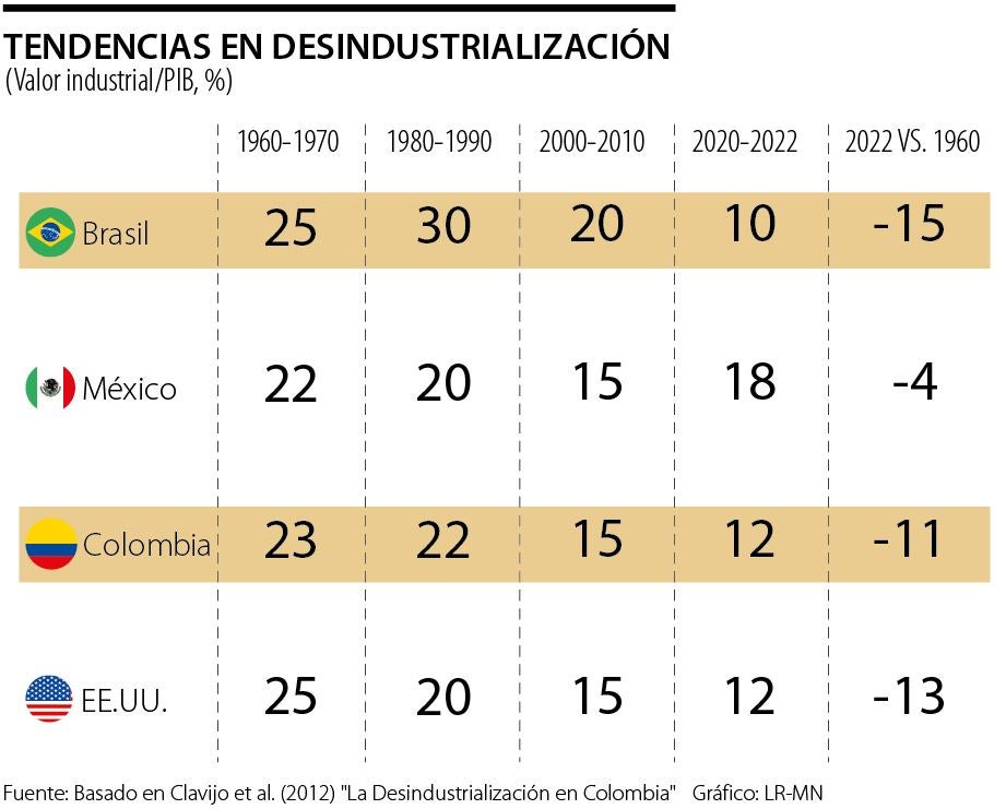 Se han esgrimido tres tipos de hipótesis para explicar la acelerada desindustrialización de algunos países emergentes, como Brasil y Colombia: i) “Enfermedad Holandesa”; ii) el efecto contable del “out-sourcing”; y iii) la rápida expansión servicios.