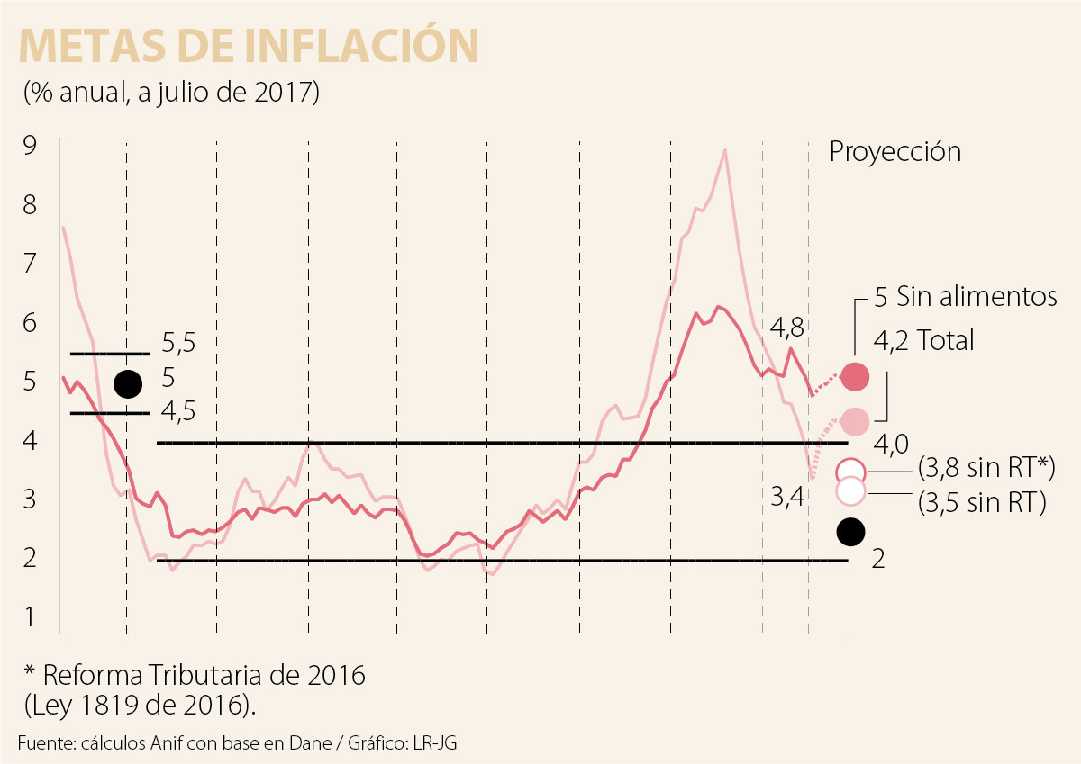 De otra parte, el propio BR deberá analizar la probabilidad de reversión parcial de esa baja en la “inflación subyacente” por cuenta de un efecto estadístico menos favorable durante septiembre-diciembre de 2017. Además, el menor costo de los importados (pass-through) durante el primer semestre (con una apreciación promedio del 6% anual) podría revertirse durante el segundo semestre, cuando cabe esperar una devaluación promedio cercana al 5% anual (consistente con niveles de TRM del orden de los $3.150/dólar y un Brent más cercano a los US$50/barril que a los US$60/barril).