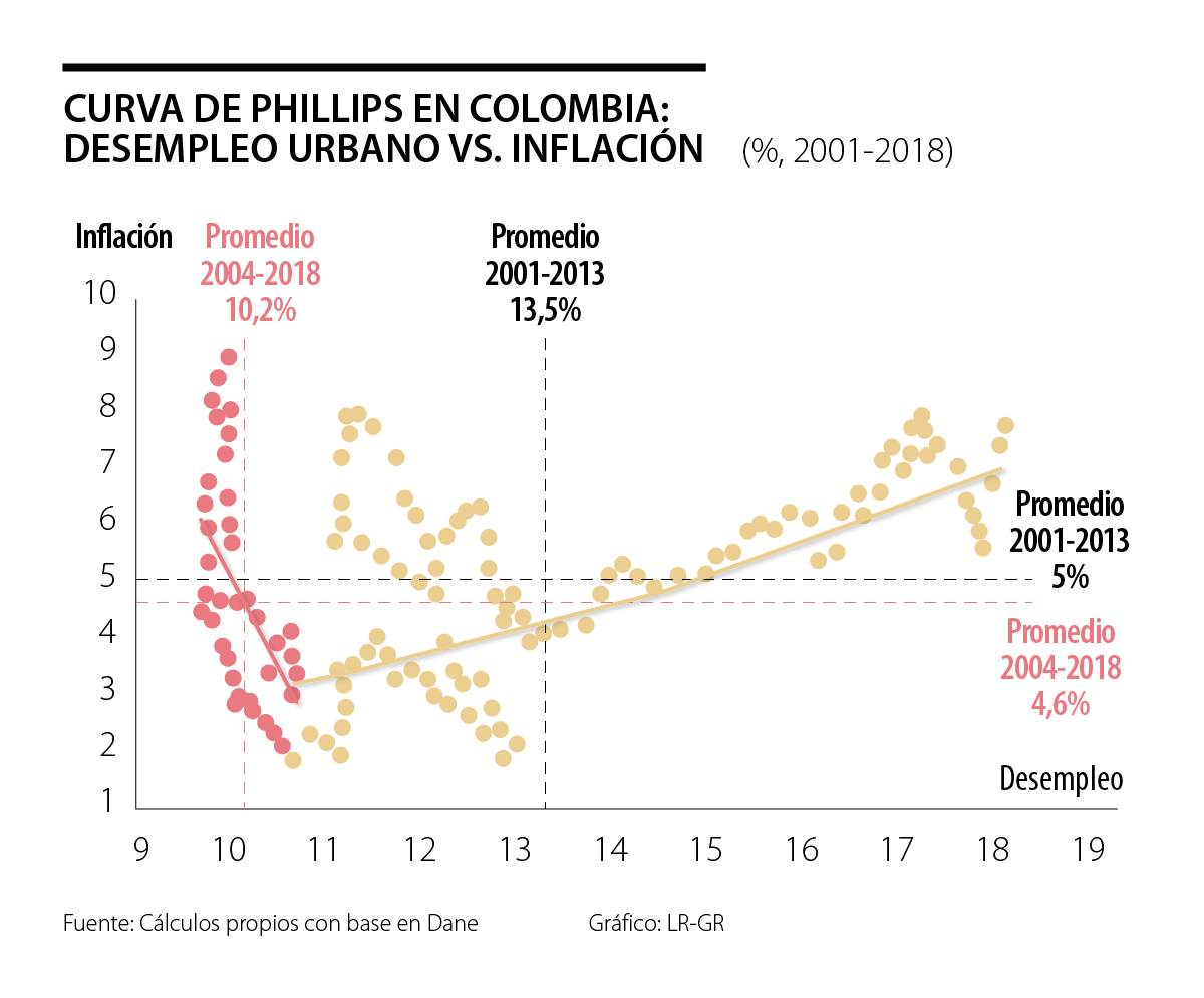 Esta visión simplista de nirvana-económica (¿Cómo no se nos había ocurrido antes?) en realidad tiene muchos cabos sueltos que vale la pena aclarar. Empecemos por la relación desempleo-inflación, que por décadas ha sido un rompecabezas. En los años cincuenta, Phillips había postulado una relación negativa entre estas variables, pues, al reducirse el desempleo, la inflación se aceleraba por presiones de demanda agregada.
