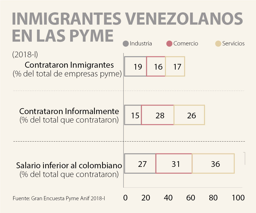 Estos últimos dos elementos podrían atenuar el efecto negativo sobre el mercado laboral, pues son condiciones que los empresarios Pyme han puesto para considerar la contratación de inmigrantes venezolanos en el corto plazo.