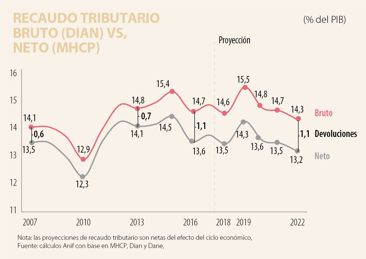 de desgreño y corrupción (especialmente a nivel de aduanas). En el mejor de los casos cabría esperar una mejoría de eficiencia en el recaudo del +0.5% del PIB hacia 2022, si todo lo anterior se hace de forma diligente. Pero no debe esperarse el +1.5% del PIB que había vendido la Administración Santos al FMI para el período anterior, lo cual nunca superó el 0.1% del PIB.