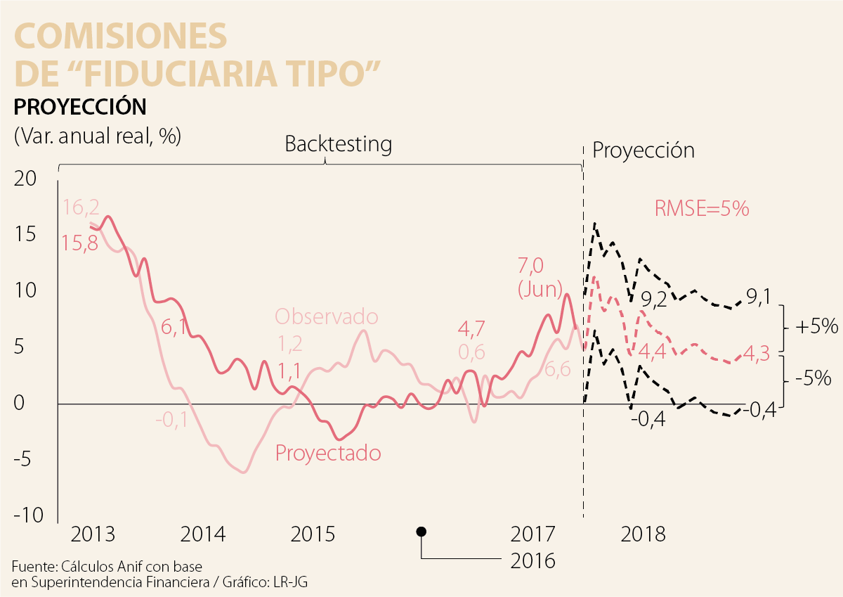En esta nota describiremos los detalles de nuestro modelo de las comisiones del negocio fiduciario, las bondades de su ajuste estadístico y las principales proyecciones que de él se derivan para el horizonte 2017-2018. Veamos esto con algún detalle.