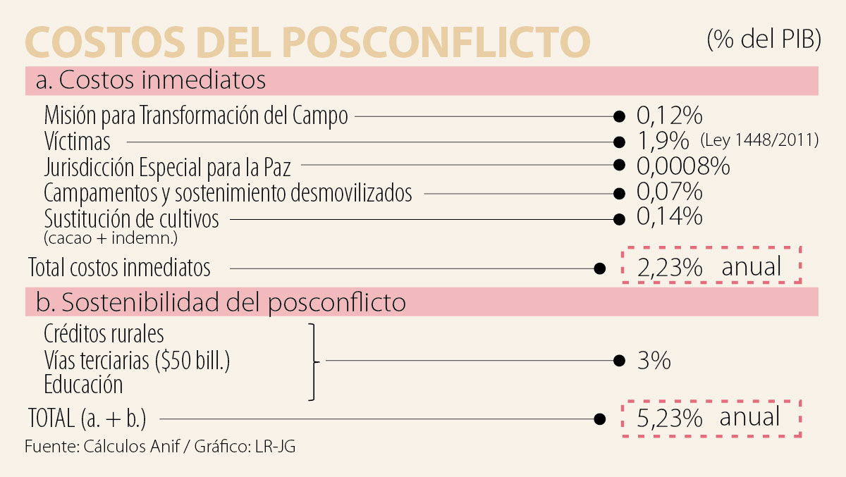 Anif ha estimado que la inversión mínima requerida para la era del posconflicto bordea 2% del PIB y si se añaden los requerimientos de infraestructura y adecuación del campo se llega a la exigente cifra de 5% del PIB. En este sentido, buscar recursos a través de las “Obras por Impuestos” luce como un mecanismo complementario interesante. En todo caso, el gobierno central deberá estar muy atento a la forma en que ello se aplica para evitar incrementar en exceso el “sacrificio fiscal” ya existente por las múltiples exenciones tributarias. Las Zomac debería dár prioridad a los de “sostenibilidad (ver cuadro adjunto).