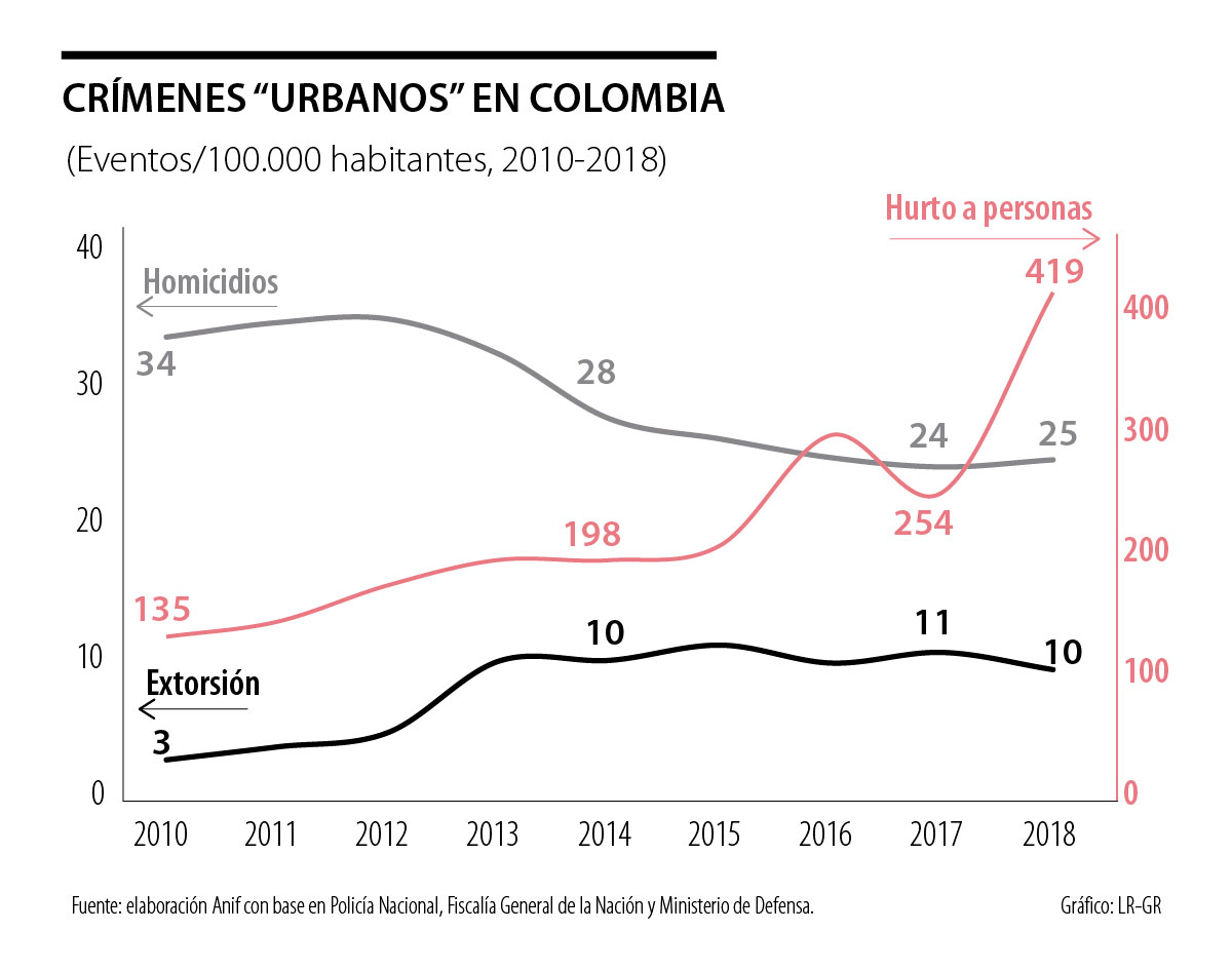 Ya mencionamos cómo ha venido materializándose el lla- mado “efecto avispero”, durante la era de pos-conflicto 2017-2018. Este postulaba que, al intentar “remover” un avispero del tamaño de nuestro problema de orden público sin la debida precaución-planificación, la consecuencia última sería la de esparcir “avispas” (ahora enardecidas), exponiéndose el país a dolorosas “picadas” (escalamiento de acciones delictivas).