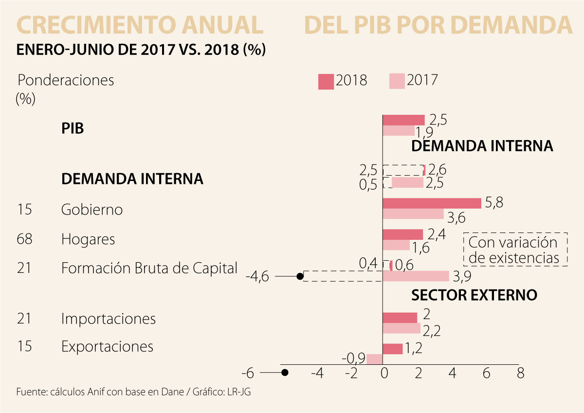 La demanda interna creció un 3.3% anual durante el segundo trimestre de 2018 (vs. 1.1% un año atrás).