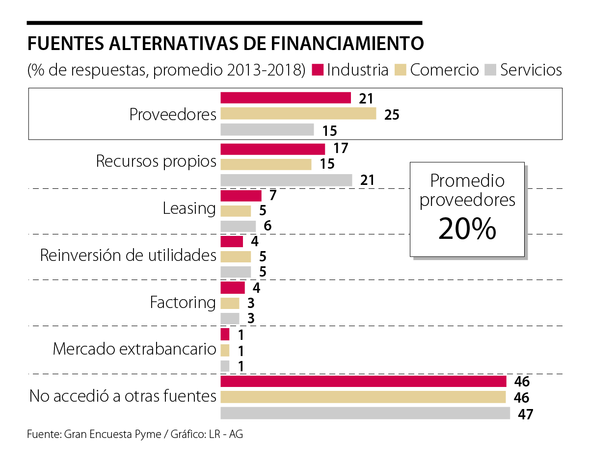 Ello ha tenido el desafortunado efecto de que el poco acceso al crédito que obtienen dichas Pymes (con valores del orden de 40% del total) se va, en su mayoría (62%), a fondear su capital de trabajo (compra de materia prima, insumos, inventarios, mano de obra y demás gastos operativos-funcionamiento).