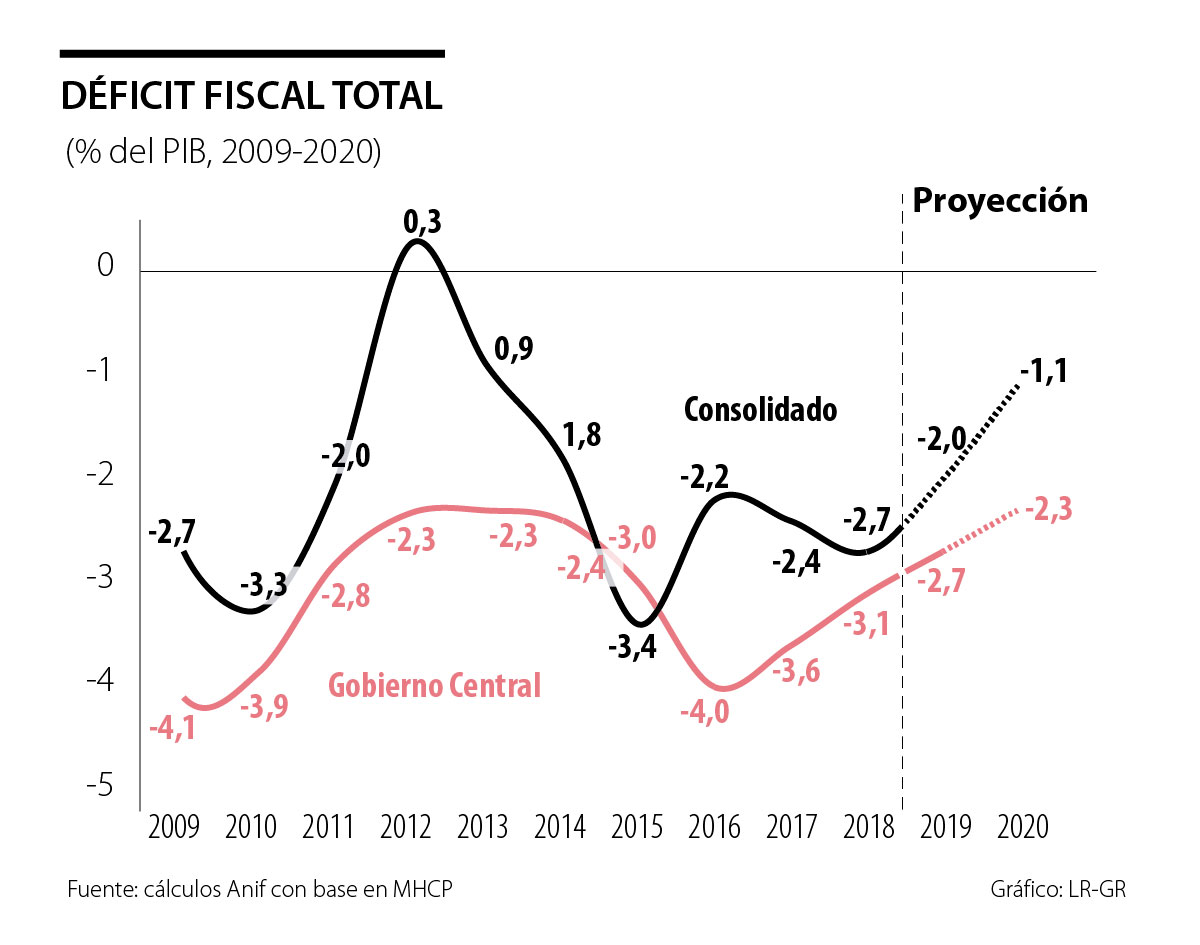 Los ingresos tributarios del GC se han deteriorado en un 2% del PIB (incluyendo Imporrenta, regalías y dividendos de Ecopetrol) tras la destorcida mineroenergética de 2014-2015. Ello implicó un marcado deterioro en el déficit fiscal del Gobierno Central (GC) y del Sector Público Consolidado (SPC) durante 2016-2017. Los esfuerzos de mejora del recaudo de la Ley 1819 de 2016 infortunadamente se estarán viendo drenados por los de la Ley 1943 de 2018 en el horizonte 2020-2022. Esto debido a que la caída en el recaudo corporativo (-1% del PIB) no logrará ser compensada por el mayor recaudo en cabeza de los hogares más ricos (+0,3% del PIB).