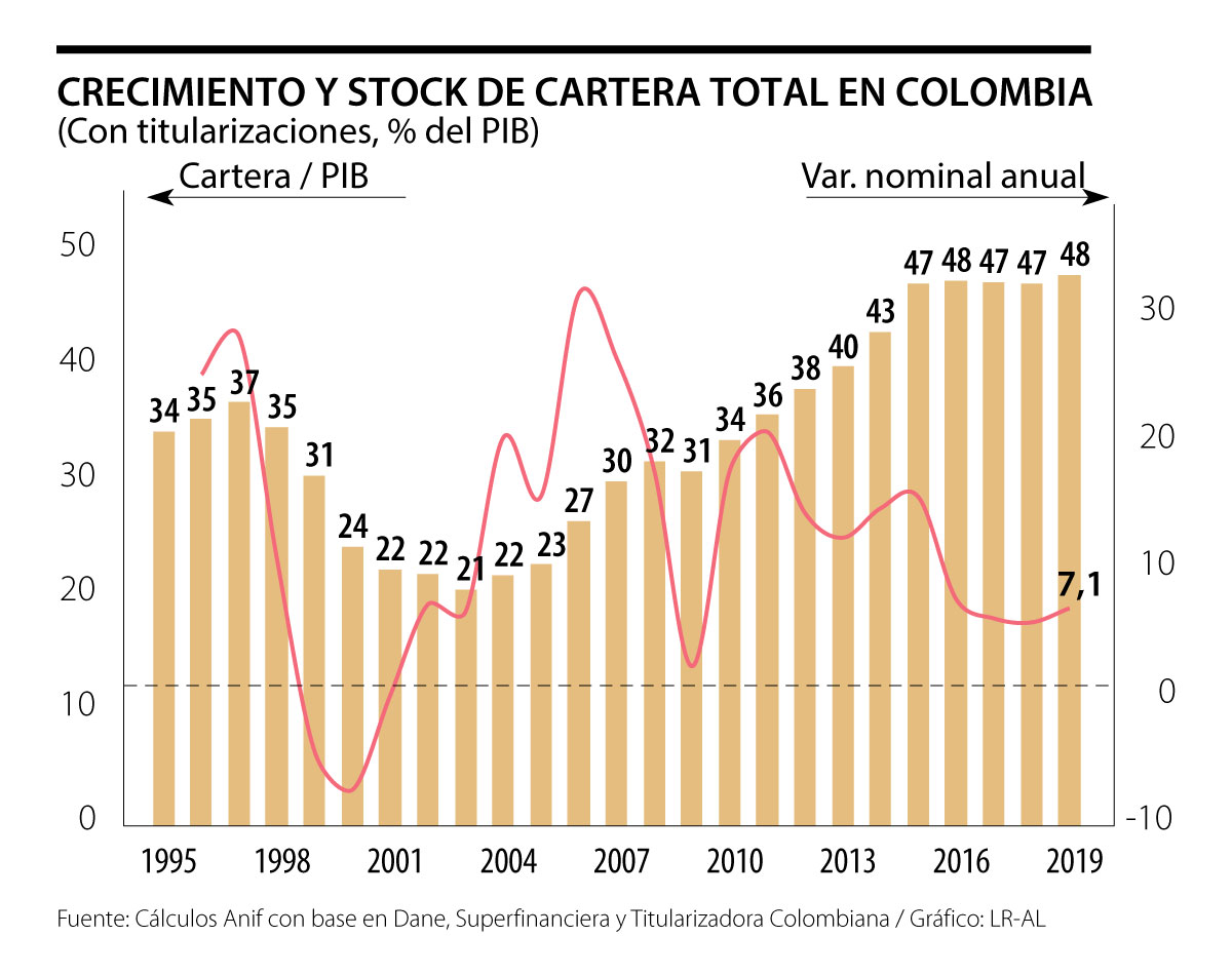 Sin embargo, el elemento preocupante del entorno macro-financiero de Colombia es que esta batalla por nueva clientela está ocurriendo en momentos en que completamos 5 años de estancamiento en la relación Cartera/PIB a niveles del 47%-48%, ver gráfico. Nótese cómo algo de ello también está ocurriendo en Estados Unidos, donde esa relación apenas se ha incrementado del 148% al 151% durante 2013-2018, donde el apalancamiento de la economía ha migrado hacia el private equity y otros non-banks.