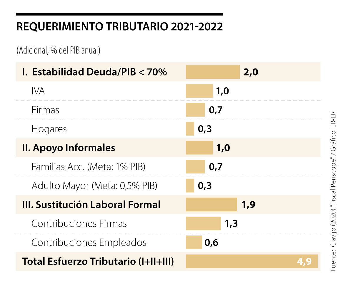 ¿Y cómo creen uds. que Colombia conseguirá entonces los cinco puntos del PIB adicionales que se requieren para virar hacia empleo-formal y cerrar las brechas fiscales? El cuadro adjunto ilustra la necesidad de 2% del PIB de mayor tributación para estabilizar la relación Deuda/PIB por debajo de 70%; 1% del PIB para apoyar el mercado laboral informal; y 2% del PIB para entrar a sustituir el fondeo empresarial no-salarial. Nótese que esta última cifra es similar a la requerida en México, quien también ha fracasado en el intento y ahora se mueve en la dirección errada al triplicar a 15% los aportes pensionales de las firmas.
