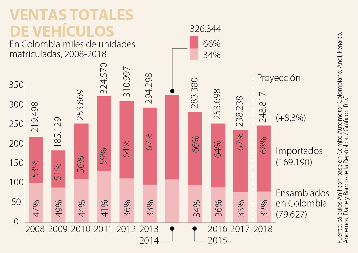 Esto se explicaría por el aumento tanto en las ventas de vehículos ensamblados en Colombia, que alcanzarían las 79.627 unidades (vs. 77.948 unidades de 2017), participando con 32% del total, como en la comercialización de vehículos importados, con 169.190 unidades vendidas en el mercado local este año (vs. 160.290 unidades de 2017), explicando el restante 68%.