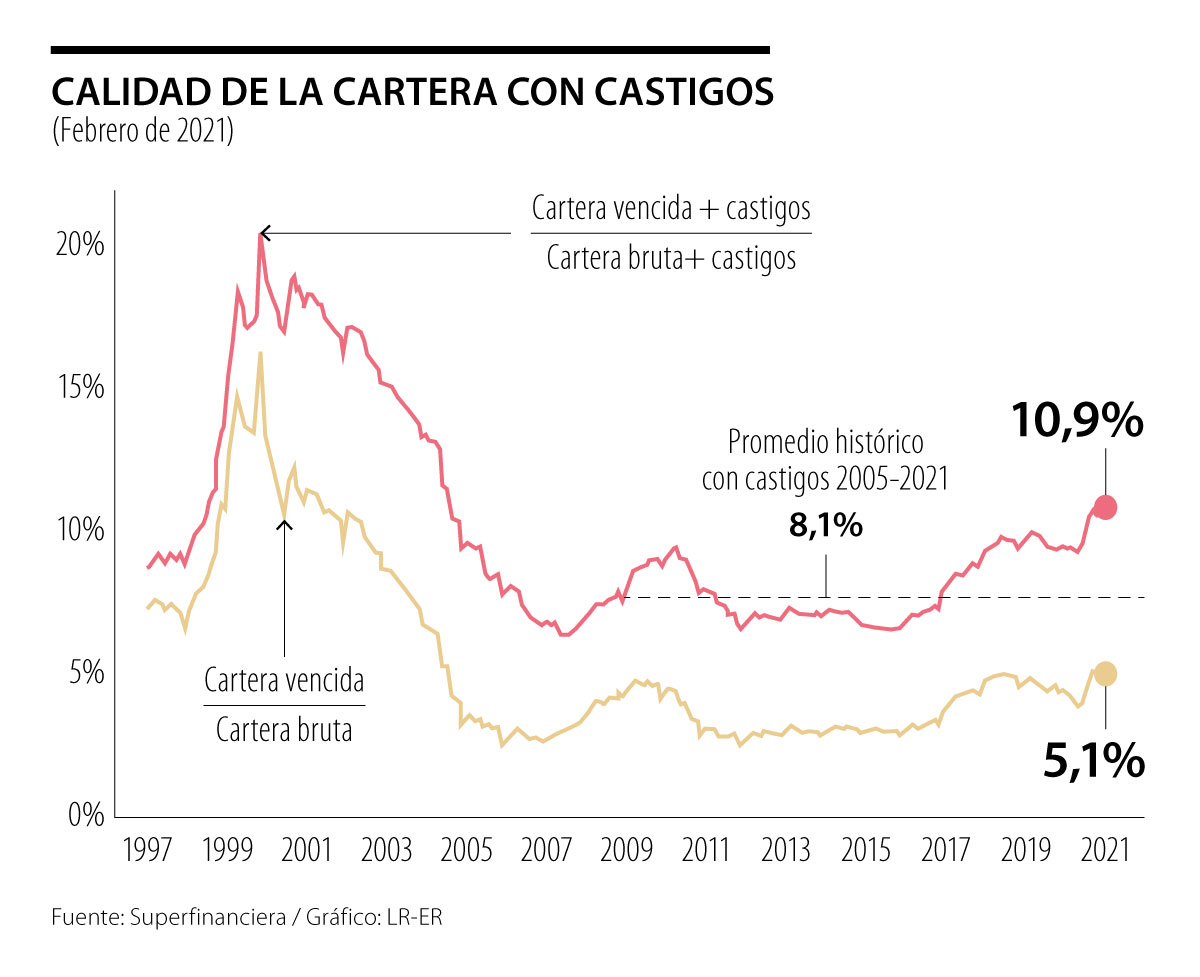 No obstante, a lo largo de 2020 se había empezado a notar el deterioro de la cartera causado por el efecto de pandemia, aunque de forma todavía tenue por cuenta de las postergaciones de pagos a capital y los alivios otorgados en el marco del Plan de Acompañamiento a Deudores (PAD) resultante de la Emergencia Económica de abril-mayo. Aun así, la cartera morosa tocaba niveles de 5% al cierre del 2020. De hecho, en diciembre de 2020, se conoció que el PAD fue ampliado hasta junio de 2021.