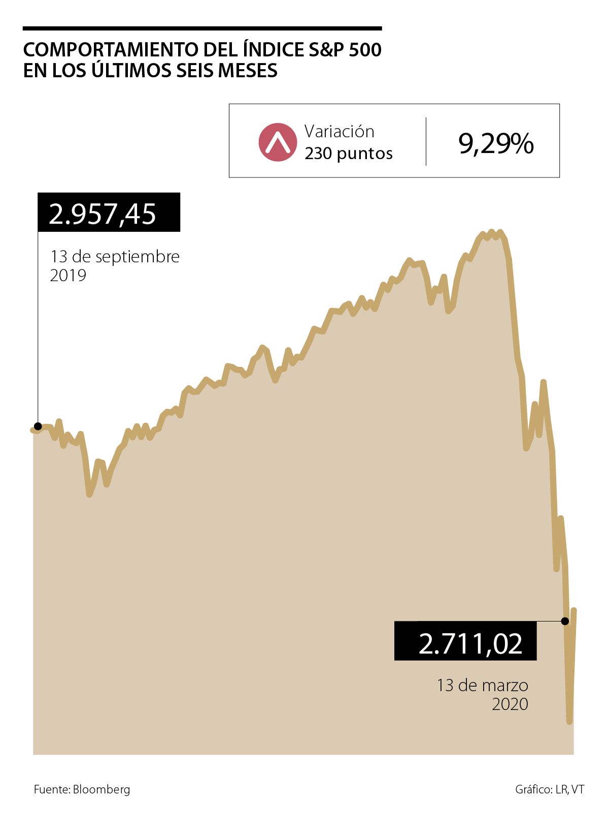 Las acciones (tan infladas como cerraron 2019) han corregido drásticamente a la baja, cayendo de ganancias de 25%-30% a terreno negativo (ver gráfico adjunto). Si el S&P500 se quedara “pegado” en los 2.500 puntos, su rentabilidad sería -23% al cierre de 2020, pero si rebotara hacia los 3.000 puntos entonces cerraría con un -8% anual. Aun así, el acumulado 2019-2020 arrojaría una rentabilidad cercana a 7% anual, nada mal para una relación Precio/Ganancia que ha estado arriba de sus promedios históricos.