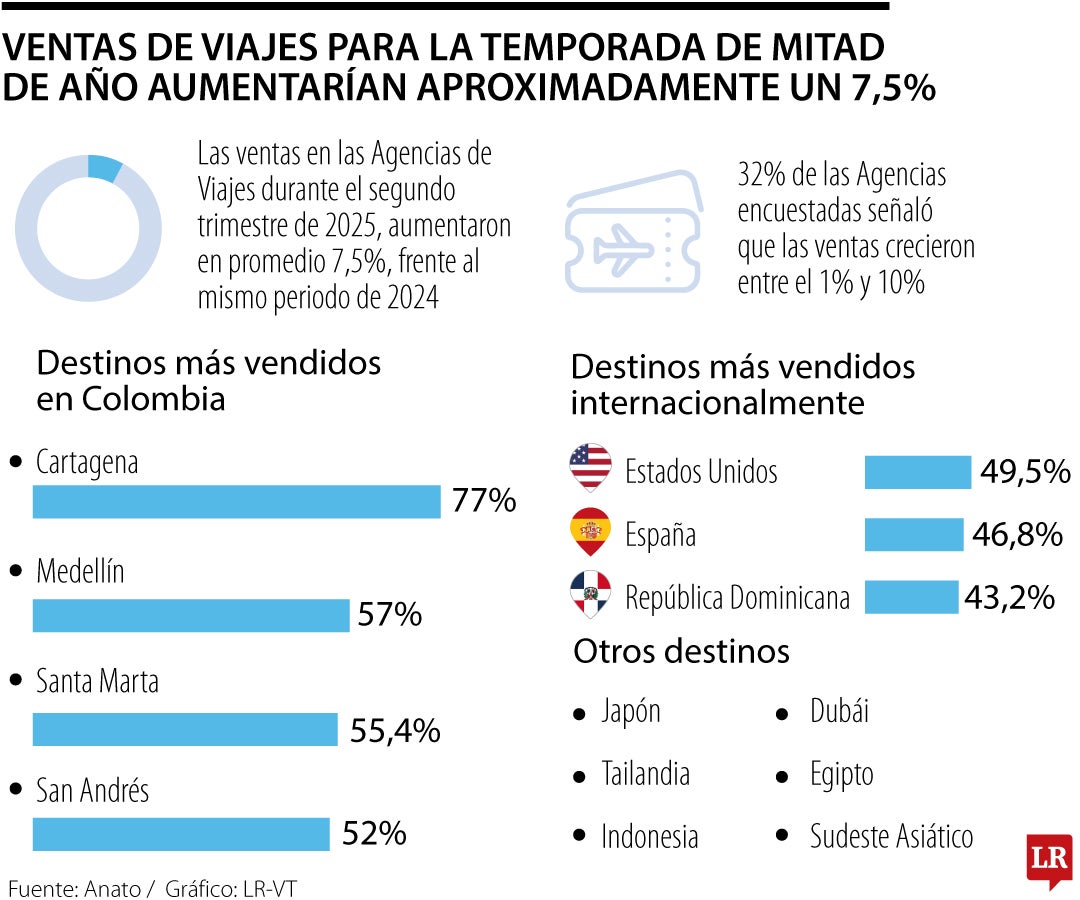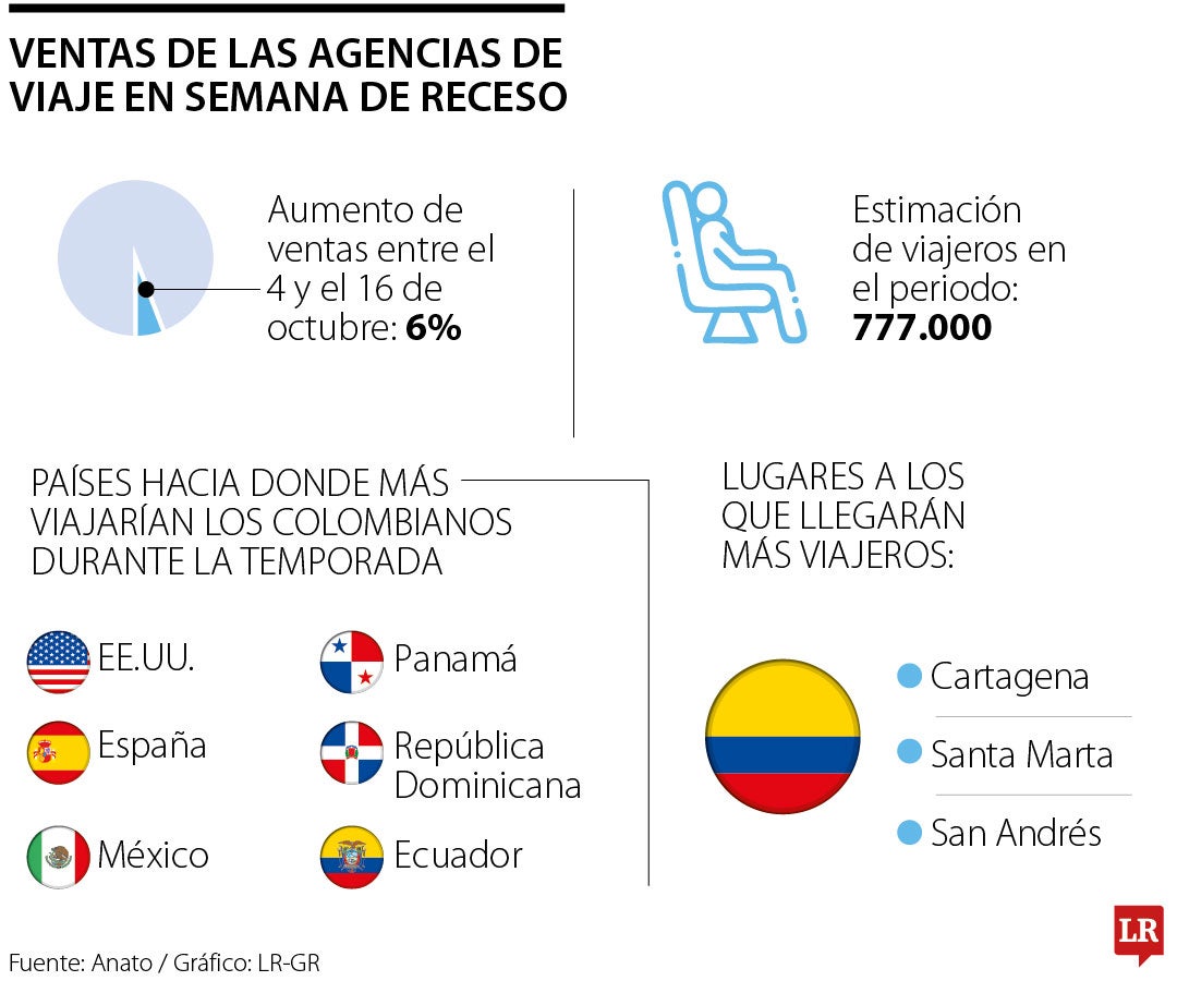 Los países donde más viajarán los colombianos son Estados Unidos, España, México, Panamá, República Dominicana y Ecuador, representando casi tres cuartas partes de los viajes al extranjero
