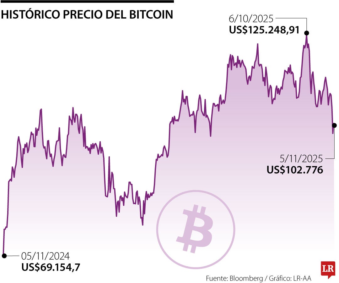 La criptomoneda original llegó a perder hasta 7,4% el martes, cayendo por debajo de US$100.000 por primera vez desde junio