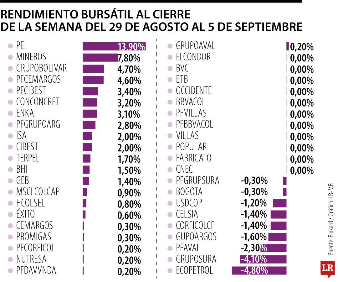 PEI logró un crecimiento de hasta 13,9% emitiendo la acción a $70.000 y logrando cerrarla a $79.980 mientras que Mineros registró 7,8% de crecimiento