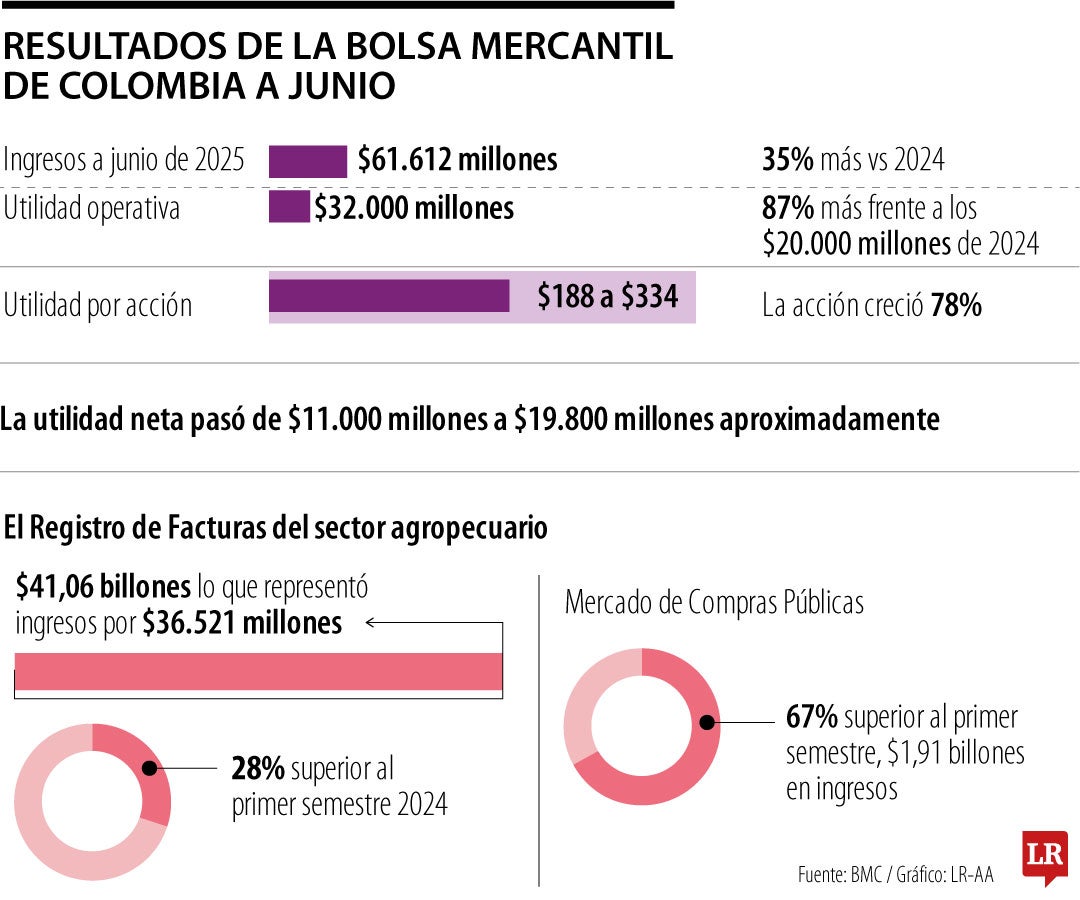 En la utilidad operativa, la Bolsa cerró en cerca de $32.000 millones, 87% más que los $20.000 millones en el cierre del enero a junio de 2024