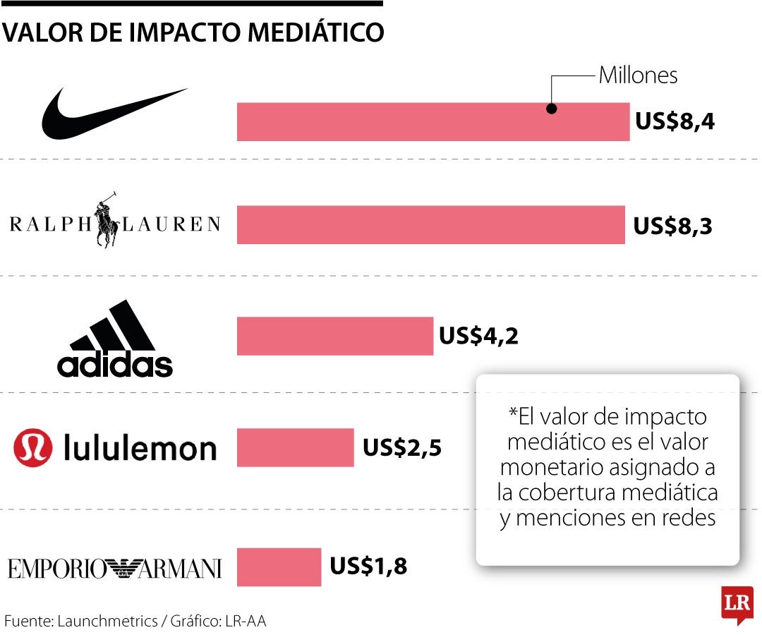 Los Olímpicos de Invierno también son una oportunidad para las marcas de moda. Así lo evidenció la consultora Launchmetrics en un reciente informe en el que destacó cuáles son las marcas con mayor valor de impacto mediático durante el evento. Nike, con US$8,4 millones; Ralph Lauren, con US$8,3 millones; Adidas, con US$4,2 millones; y Lululemon, con US$2,5 millones, lideran. (TA)