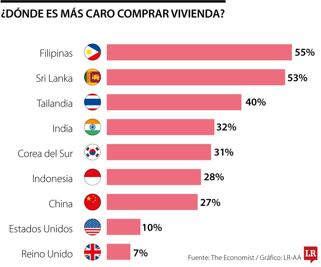 The Economist publicó un informe que revela dónde están las viviendas más inasequibles del mundo. El análisis se realizó con base en las personas que reportaron dificultades financieras relacionadas con la vivienda en los últimos 12 meses. Filipinas alcanzó 55%, seguido por Sri Lanka (53%) y Tailandia (40%). El top cinco lo completaron India (32%) y Corea del Sur (31%). (JM)