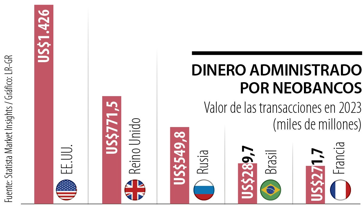 Recientes cifras de Statista Market Insights mostraron que la banca digital puede mover hasta US$1.426 millones, como en el caso de EE.UU., otros de los países con cifras significativas son Reino Unido con US$771,5 millones y Rusia, con US$549,8 millones. De los países de la región, el ranking destacó a Brasil, con un valor de transacciones de US$289,7 millones y a Argentina, con US$35,7 millones. (SS)